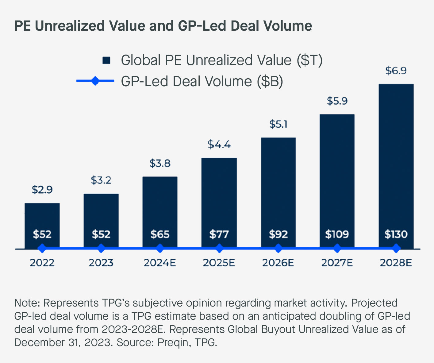 In coming years, we expect strong continued growth in the private equity secondaries market and demand for single-asset CVs, in particular. GP-led secondaries delivered a record year in 2024, with total exit value of around $70B. That said, we believe the market remains highly undercapitalized relative to the overall opportunity.